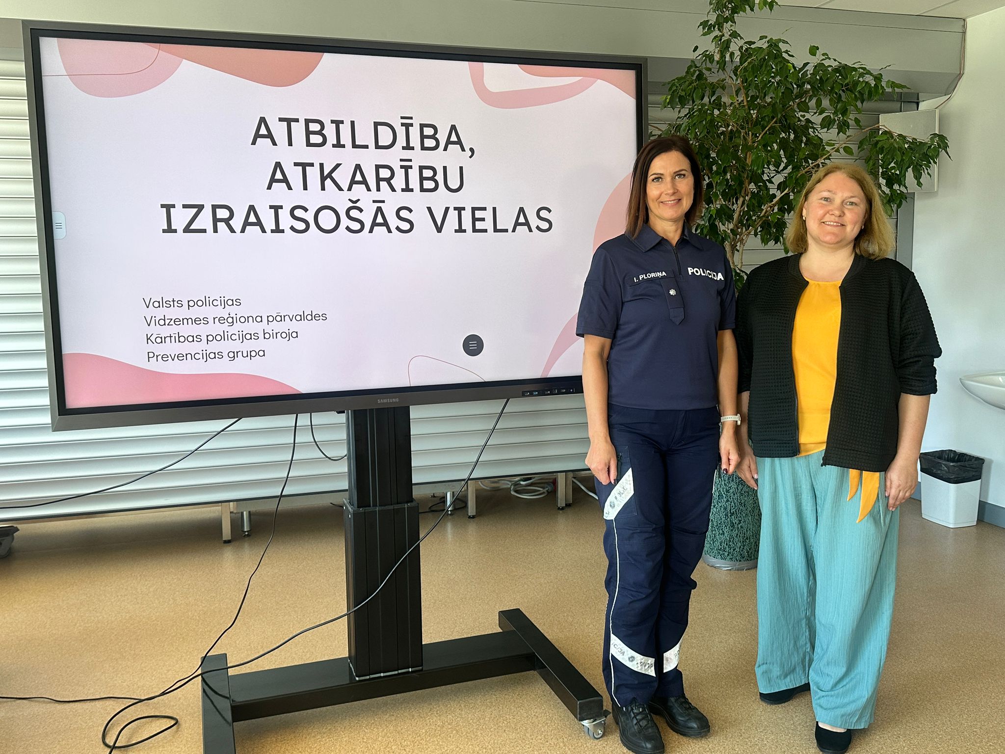 Valmieras tehnikumā 23. un 24. septembrī viesojās Valsts policijas Vidzemes reģiona pārvaldes Kārtības policijas biroja Prevencijas grupas vecākā inspektore Ieva Ploriņa, lai aizvadītu preventīvas pārrunas ar 1. kursa audzēkņiem.