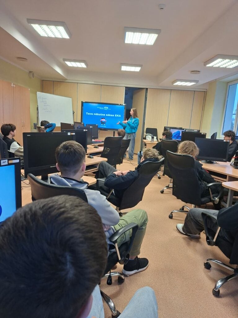 Valmieras tehnikumā viesojas Ekonomikas un kultūras augstskolas studente, kura programmēšanas tehniķiem un uzskaites grāmatvežiem pastāstīja par savu pieredzi, studiju iespējām un to, kā augstskola atšķiras no skolas vai tehnikuma.