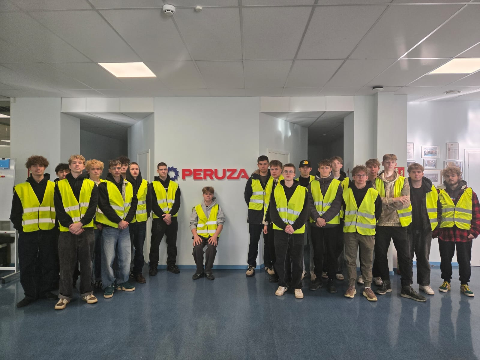 Kopā ar skolotājām Rūtu Brigmani un Olhu Soročinsku (Sorochynska), 22. un 14. grupas audzēkņi devās mācību ekskursijā uz uzņēmumiem SIA “FORMA”, kas piedāvā pilnu ražošanas ciklu – no iekārtu un ražošanas līniju projektēšanas līdz to izgatavošanai, automatizācijai, uzstādīšanai, un SIA “PERUZA”, kas ar vairāk kā 30 gadu pieredzi ražo robotizētas iekārtas pārtikas pārstrādes un rūpniecības vajadzībām.