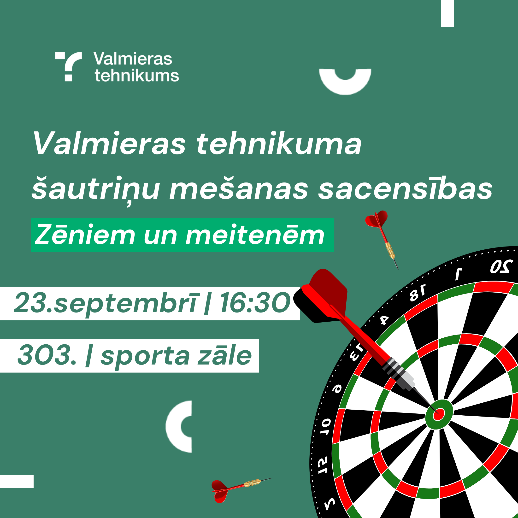 23. septembrī plkst. 16.30 sporta zālē (303. telpā) notiks šautriņu mešanas sacensības gan meitenēm, gan zēniem.
