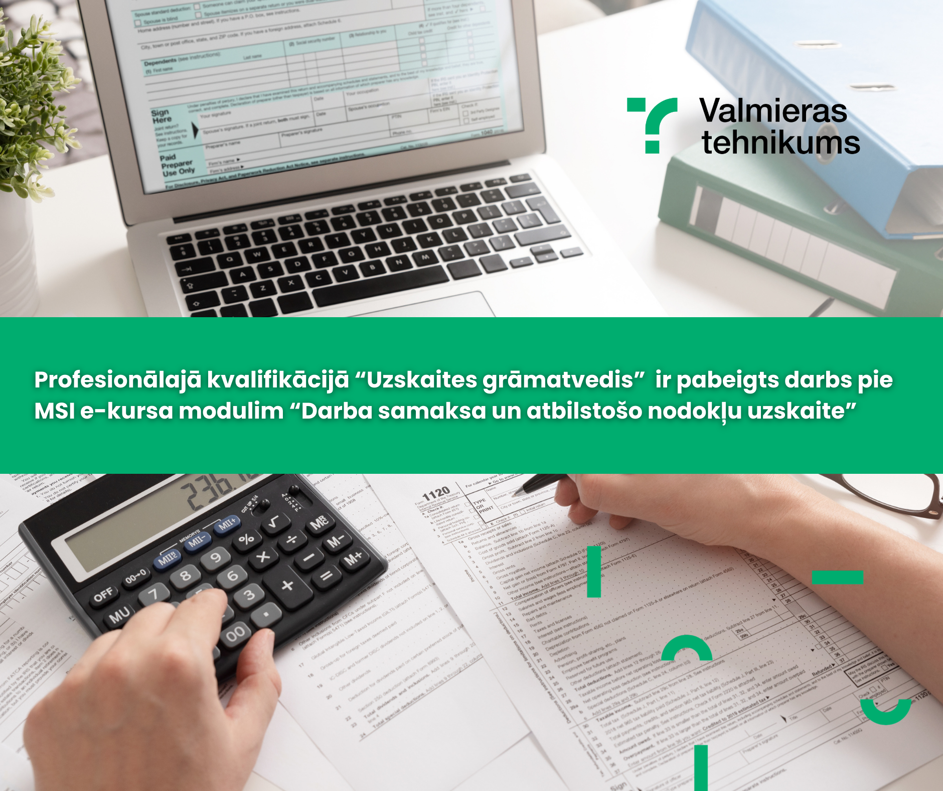Profesionālajā kvalifikācijā “Uzskaites grāmatvedis” ir pabeigts darbs pie MSI e-kursa modulim “Darba samaksa un atbilstošo nodokļu uzskaite”
