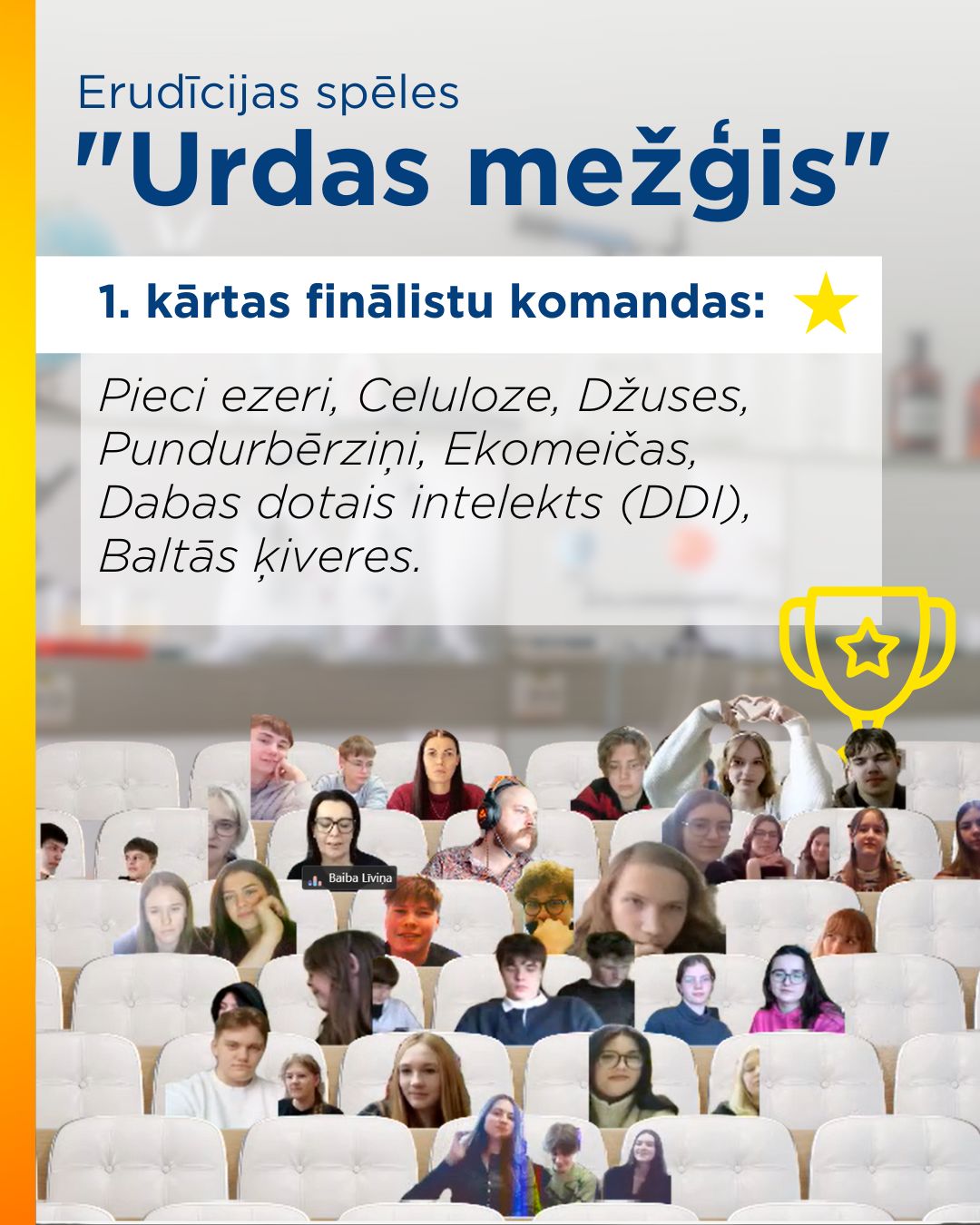 Aicinām pieteikties arī jaunas komandas otrajai kārtai, lai azartiskā spēlē sacenstos par vērtīgām balvām! Pirmās trīs vietas dalīs 750 eiro vērtu balvu fondu, kuru varēs izmantot kā transporta kompensāciju pašu izvēlētai ekskursijai visai klasei. Pieteikšanās anketu meklē šeit!