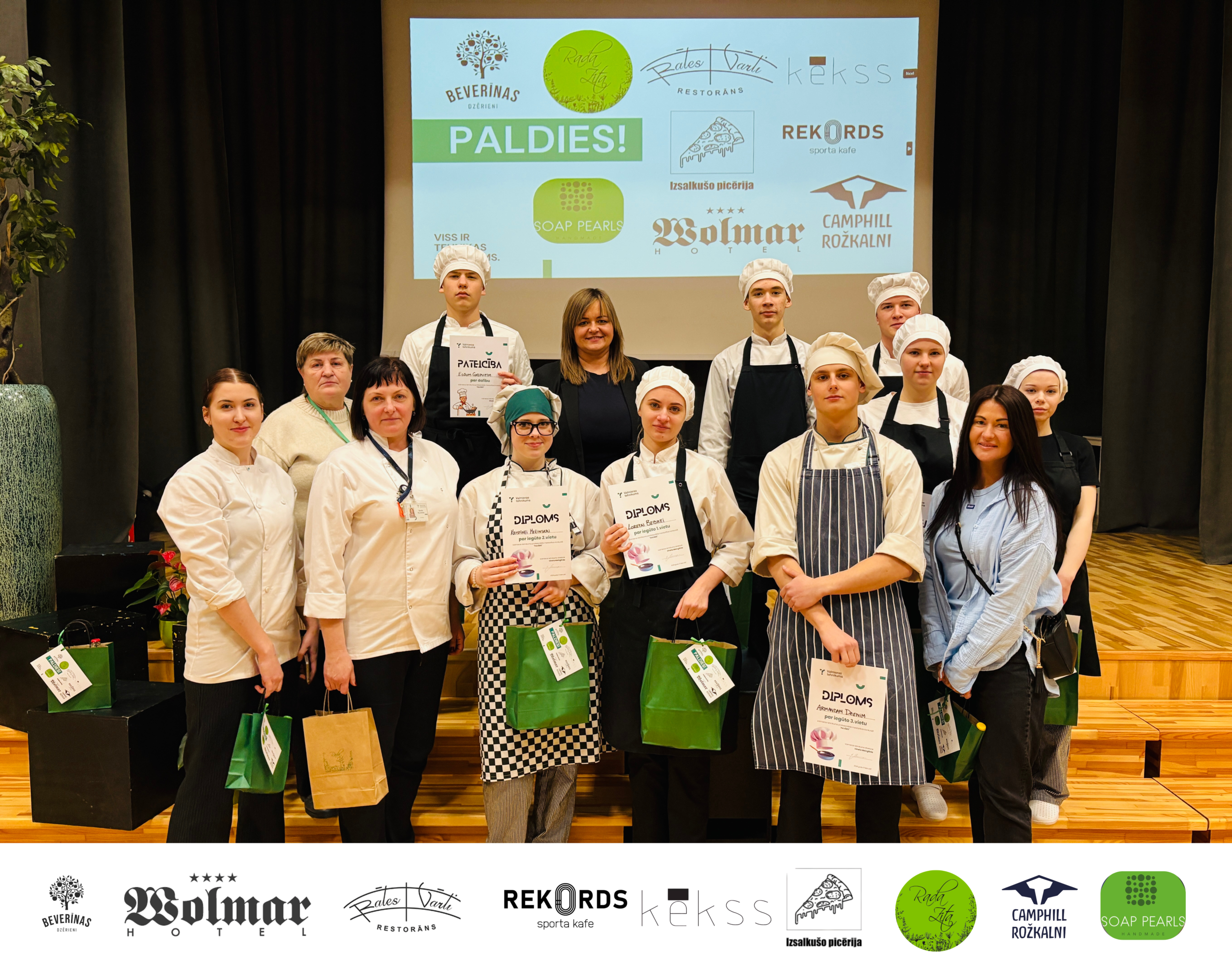 SAKĀM LIELU PALDIES mūsu atbalstītājiem Restorānam “Rātes Vārti”, viesnīcas “WOLMAR” restorānam, “Abula ābols”, sporta kafejnīcai “Rekords”, ceptuvei “KĒKSS”, “Izsalkušo picērija”, “RADA ZITA”, “Camphill Rožkalni” un “Ziepju Pērles”.