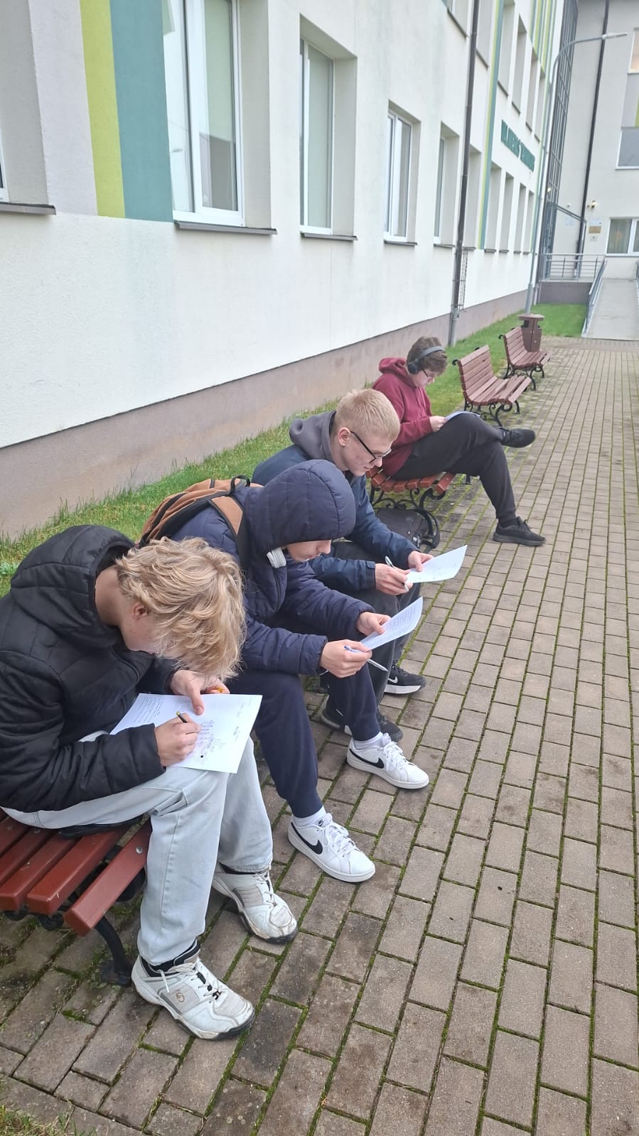 - Skolotāji Kalvis Tomsons un Ieva Salmane 26. un 11. grupas audzēkņiem bija sarūpējuši uzdevumus un aktivitātes, kas jāveic tehnikuma teritorijā.