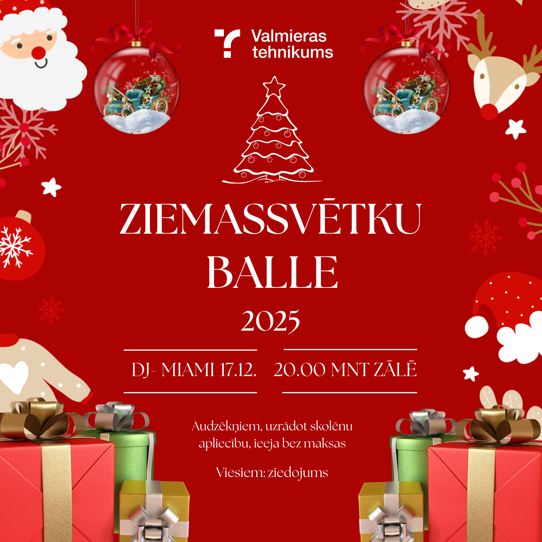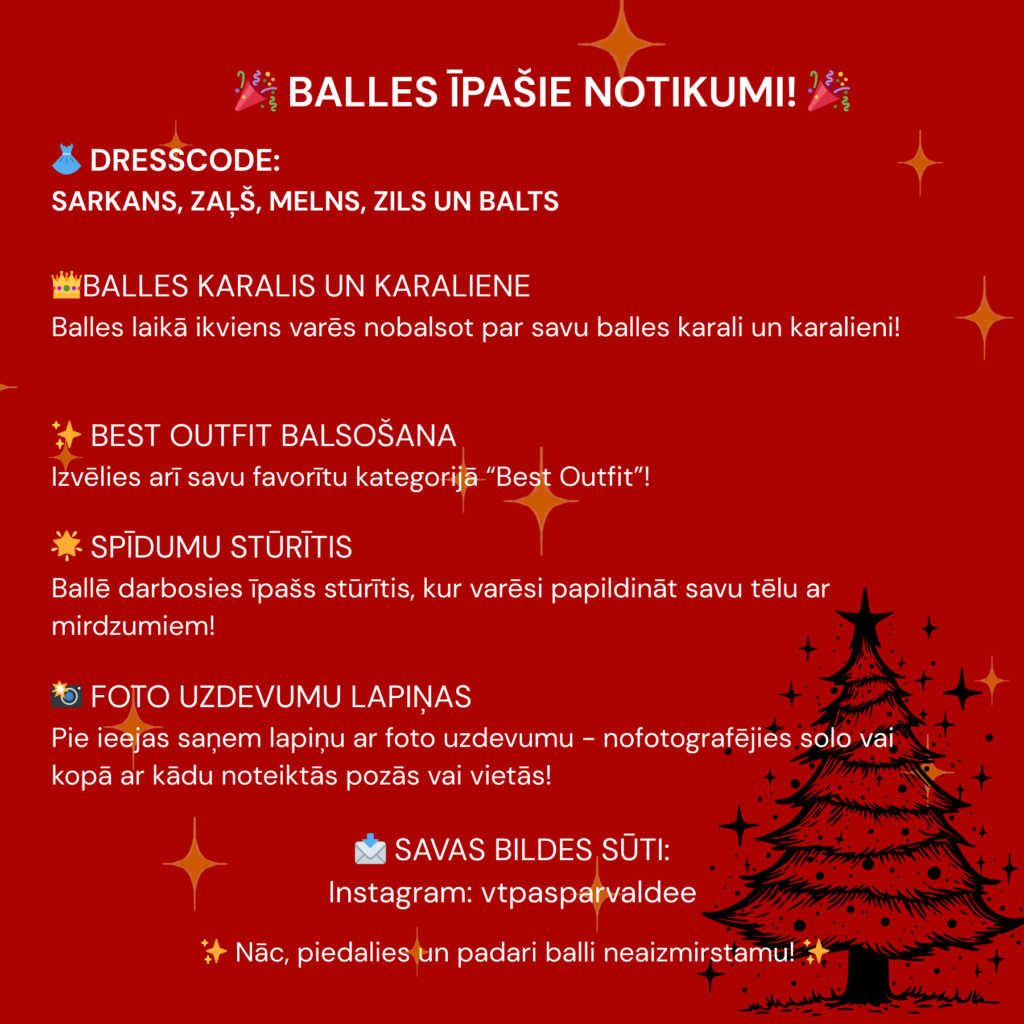 Valmieras tehnikuma izglītojamo pašpārvalde aicina uz gada gaidītāko notikumu – Ziemassvētku ballīti. Šogad tā solās būt pārsteigumiem pilna!