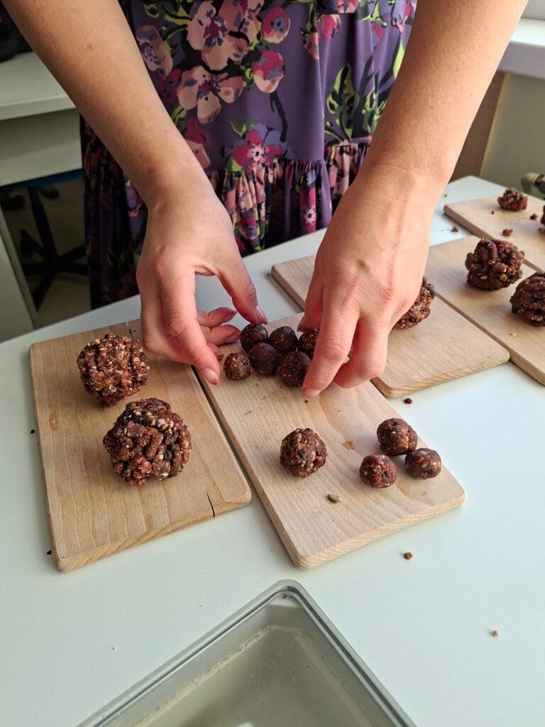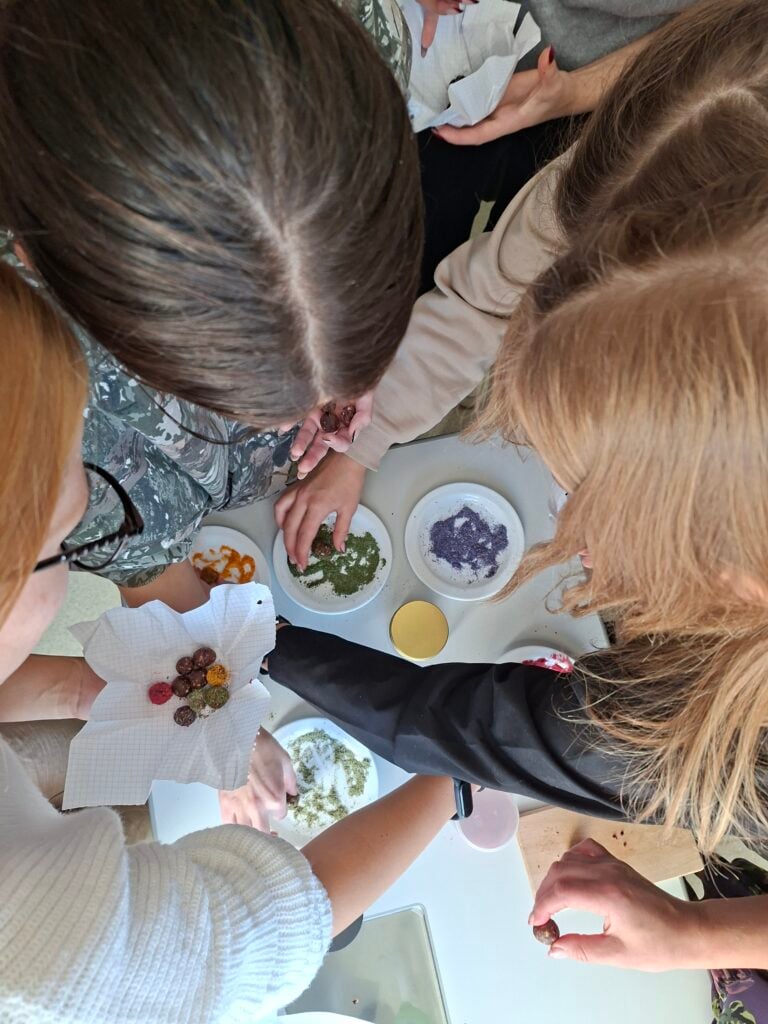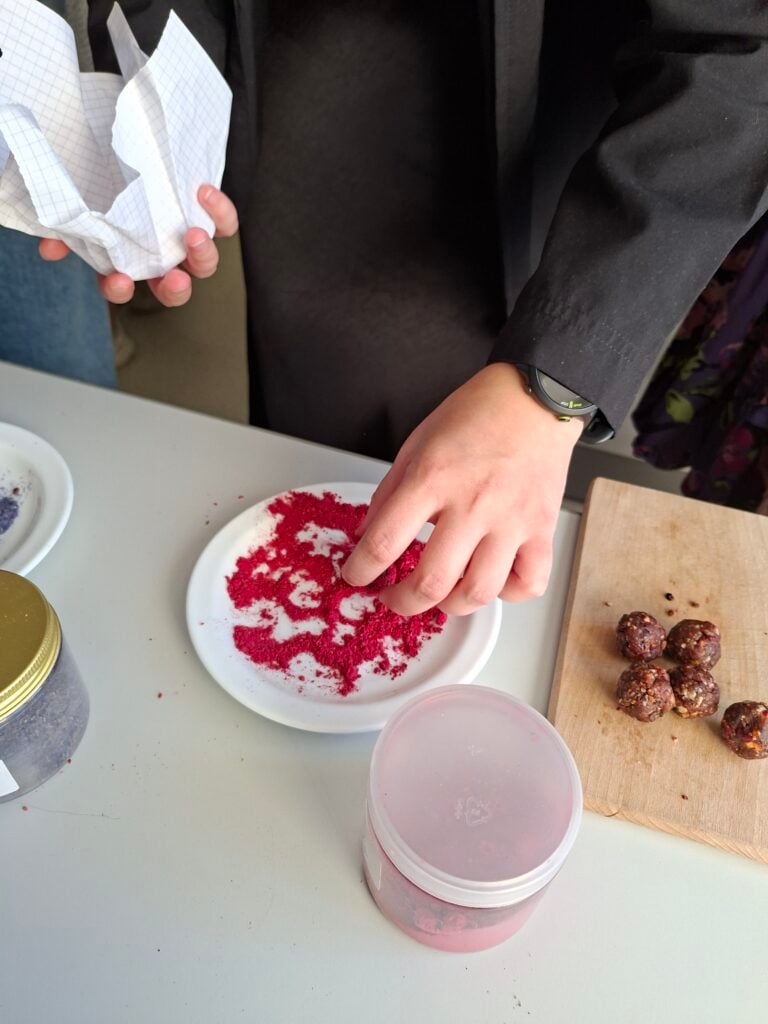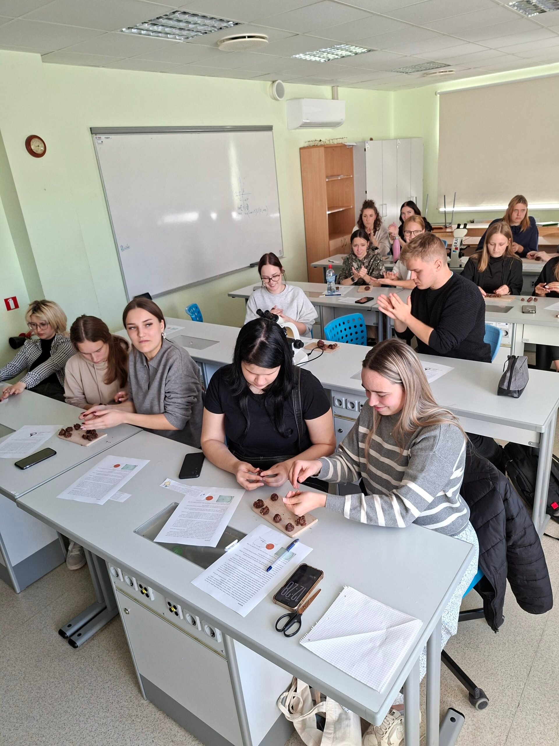 Bija iespēja apskatīt produktus arī no bioloģijas puses – to šūnas mikroskopā. Noslēgumā audzēkņi izgatavoja veselīgu našķi, kas tapis kā bezatkritumu ražošanas produkts.