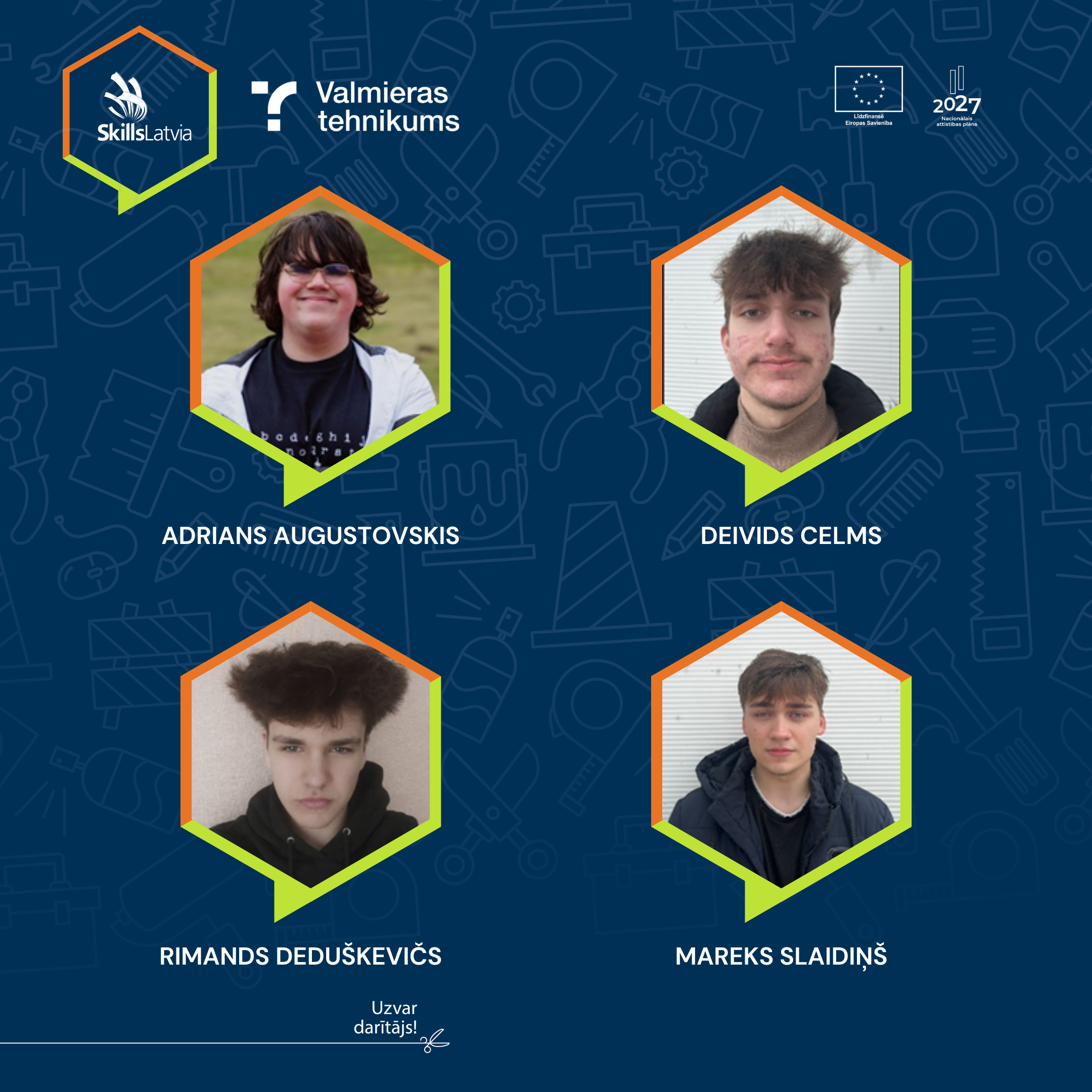 Nacionālā jauno profesionāļu meistarības konkursa SkillsLatvia 2026 pusfinālā Valmieras tehnikuma audzēkņi Mareks Slaidiņš, Adrians Augustovskis, Rimands Deduškevičs un Deivids Celms iekļuvuši SkillsLatvia 2026 finālā.